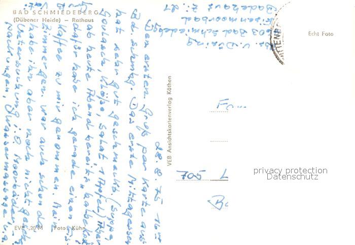72964518 alte Postkarte Bad Schmiedeberg Rathaus Denkmal postalisch gelaufen Erhaltung siehe scans [FriedD77] KatCode: 11110015091020