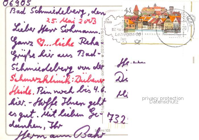 73238494 alte Postkarte Bad Schmiedeberg Trinktempel Kurhaus Klinik Eisenmoorbad Atrium Kurmittelhaus Chronik postalisch gelaufen Erhaltung siehe scans [KathaD81] KatCode: 11110015091020