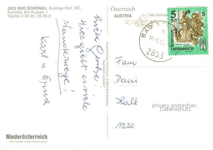 73650274 alte Postkarte Bad Schoenau Bucklige Welt Kurhotel Panorama postalisch gelaufen Erhaltung siehe scans [WerneD78] KatCode: 11390122032302