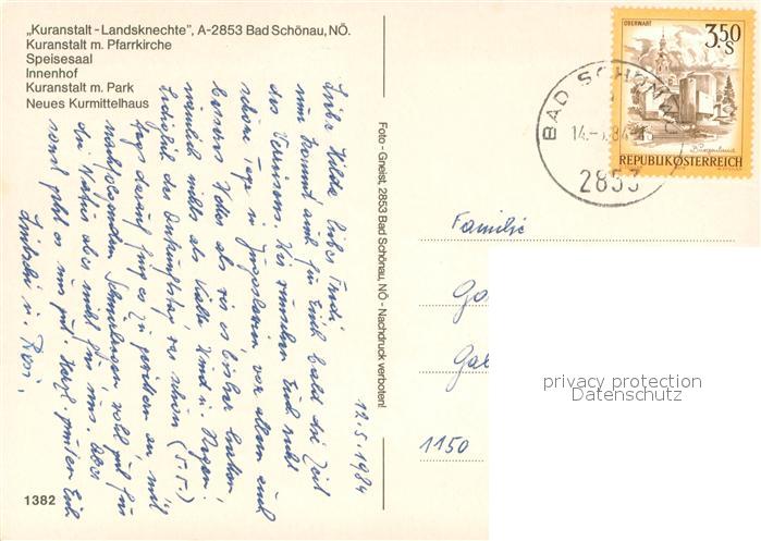 73655921 alte Postkarte Bad Schoenau Kuranstalt Landsknechte Pfarrkirche Speisesaal Innenhof Kuranstalt mit Park Neues Kurmittelhaus postalisch gelaufen Erhaltung siehe scans [WerneD78] KatCode: 11390122032302