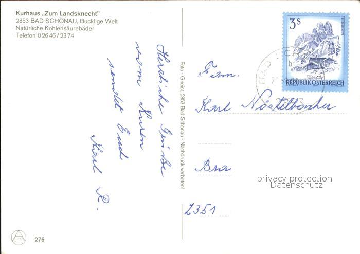 71907503 alte Postkarte Bad Schoenau Kurhaus Zum Landsknecht postalisch gelaufen Erhaltung siehe scans KatCode: 11390122032302