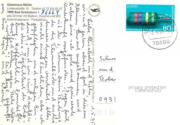 72616604 alte Postkarte Bad Schoenborn Gaestehaus Mueller postalisch gelaufen Erhaltung siehe scans [FriedD77] KatCode: 11110008215100