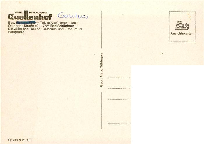 73880784 Bad Schoenborn Hotel Restaurant Quellenhof postalisch nicht gelaufen Erhaltung siehe scans [FriedD77] KatCode: 11110008215100
