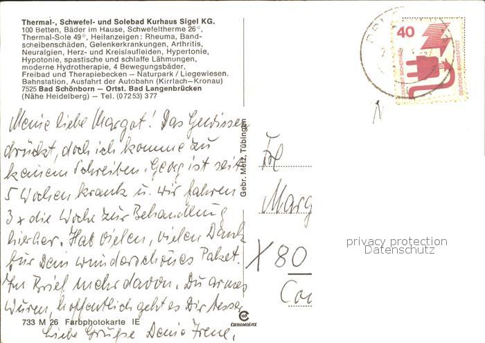 72012008 alte Postkarte Bad Schoenborn Kurhaus Sigel KG postalisch gelaufen Erhaltung siehe scans KatCode: 11110008215100