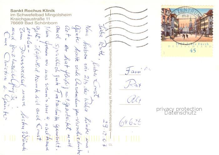 73767181 alte Postkarte Bad Schoenborn Sankt Rochus Klinik Fliegeraufnahme postalisch gelaufen Erhaltung siehe scans [FriedD77] KatCode: 11110008215100