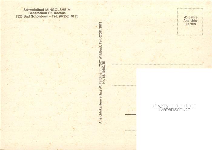 73165611 Bad Schoenborn Schwefelbad Mingolsheim Sanatorium St Rochus Park postalisch nicht gelaufen Erhaltung siehe scans [WerneD78] KatCode: 11110008215100