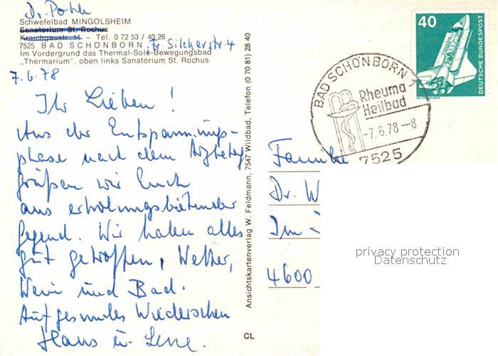 72701053 alte Postkarte Bad Schoenborn Schwefelbad Mingolsheim Solebad Thermarium Sanatorium St Rochus Fliegeraufnahme postalisch gelaufen Erhaltung siehe scans [FriedD77] KatCode: 11110008215100