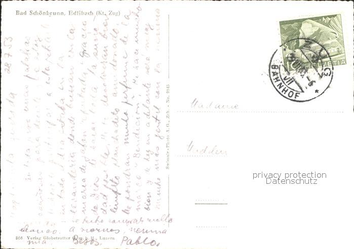 11655115 alte Postkarte Bad Schoenbrunn Menzingen ZG Fliegeraufnahme postalisch gelaufen Erhaltung siehe scans KatCode: 11470250855996
