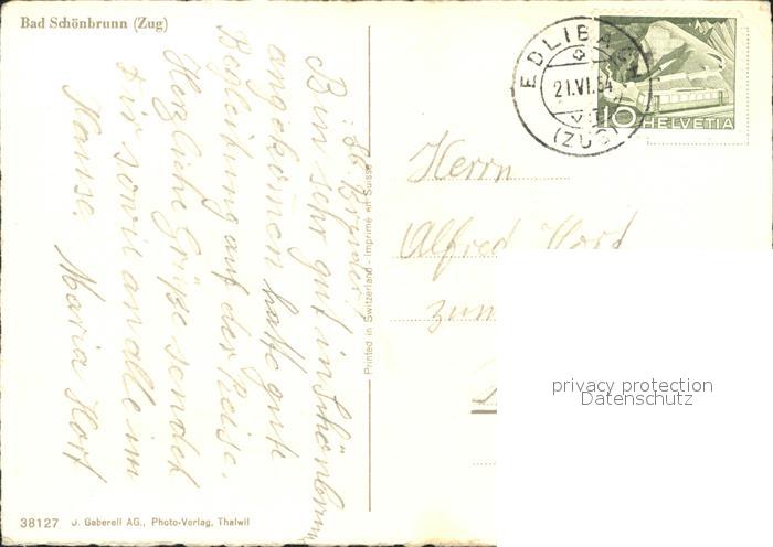 11655117 alte Postkarte Bad Schoenbrunn Menzingen ZG Panorama postalisch gelaufen Erhaltung siehe scans KatCode: 11470250855996