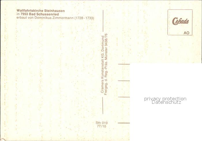 71831869 Bad Schussenried Fliegeraufnahme Wallfahrtskirche Steinhausen postalisch nicht gelaufen Erhaltung siehe scans KatCode: 11110008426014
