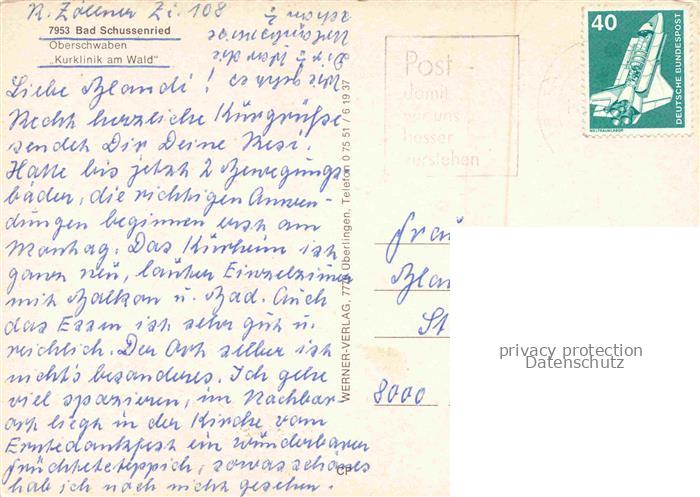 74052568 alte Postkarte Bad Schussenried Kurklinik am Wald postalisch gelaufen Erhaltung siehe scans [FriedD77] KatCode: 11110008426014