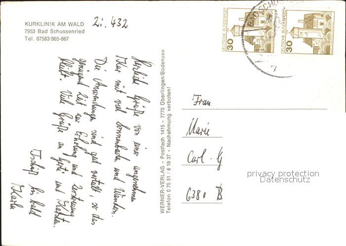 alte Postkarte Bad Schussenried Kurklinik am Wald Gymnastikhalle Kegelbahn Hallenbad postalisch gelaufen Erhaltung siehe scans