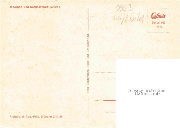 74052830 Bad Schussenried Kurort Moorbad postalisch nicht gelaufen Fliegeraufnahme Erhaltung siehe scans [FriedD77] KatCode: 11110008426014