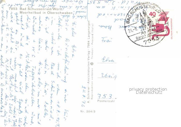 72896924 alte Postkarte Bad Schussenried Moorheilbad Kloster Klosterhof postalisch gelaufen Erhaltung siehe scans [KathaD81] KatCode: 11110008426014