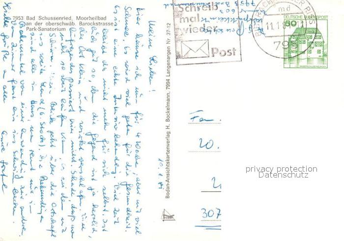 73043163 alte Postkarte Bad Schussenried Moorheilbad Park Sanatorium Springbrunnen Oberschwaebische Barockstrasse postalisch gelaufen Erhaltung siehe scans [FriedD77] KatCode: 11110008426014