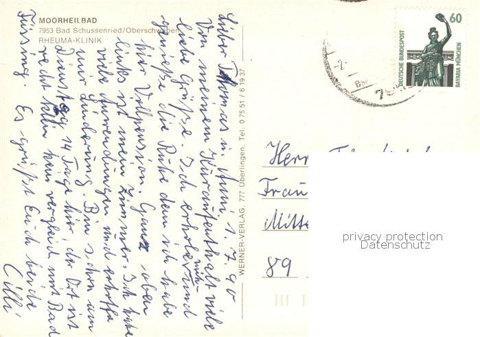 73780250 alte Postkarte Bad Schussenried Moorheilbad Rheumaklinik postalisch gelaufen Erhaltung siehe scans [WerneD78] KatCode: 11110008426014