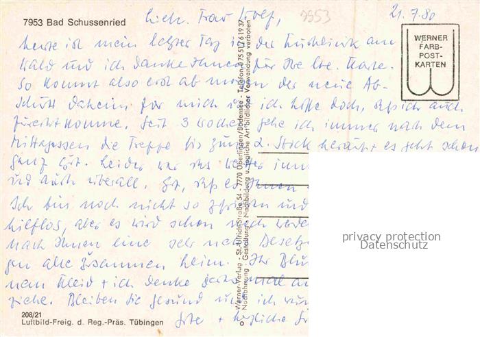 74052569 Bad Schussenried Panorama Kurort postalisch nicht gelaufen Fliegeraufnahme Erhaltung siehe scans [FriedD77] KatCode: 11110008426014