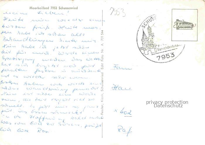 74059445 alte Postkarte Bad Schussenried Parksanatorium Kurheim Moorbad Zeller See Toerle postalisch gelaufen Erhaltung siehe scans [WerneD78] KatCode: 11110008426014