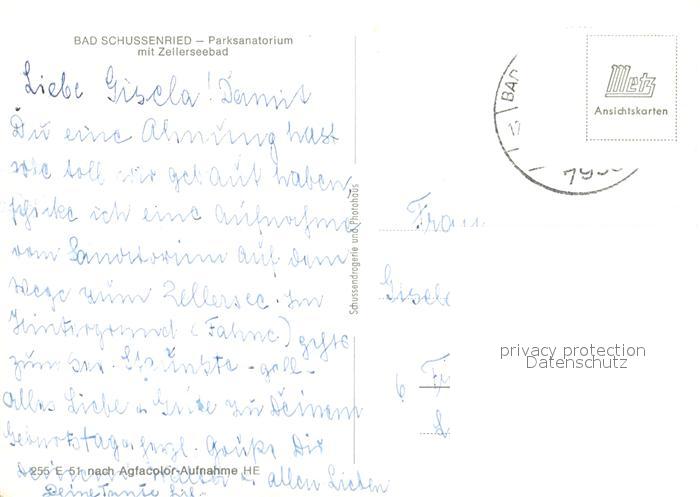 73122306 alte Postkarte Bad Schussenried Parksanatorium Zellerseebad postalisch gelaufen Erhaltung siehe scans [KathaD81] KatCode: 11110008426014