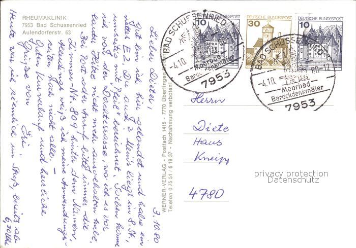 alte Postkarte Bad Schussenried Rheumaklinik postalisch gelaufen Erhaltung siehe scans