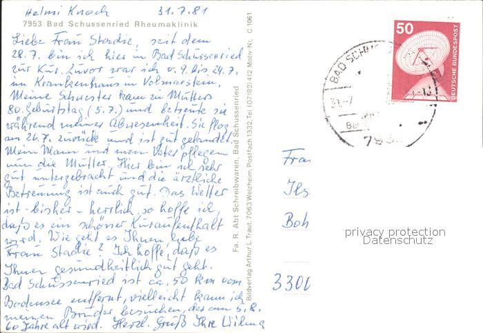 72113995 alte Postkarte Bad Schussenried Rheumaklinik Teilansichten postalisch gelaufen KatCode: 11110008426014