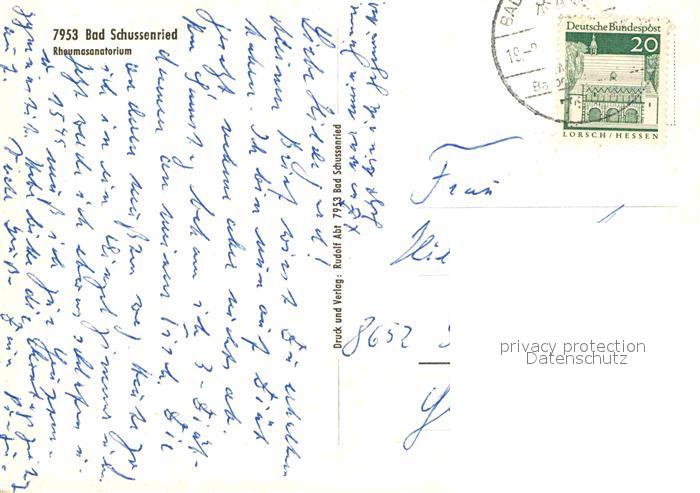 72725670 alte Postkarte Bad Schussenried Rheumasanatorium postalisch gelaufen Erhaltung siehe scans [LiesaD40] KatCode: 11110008426014