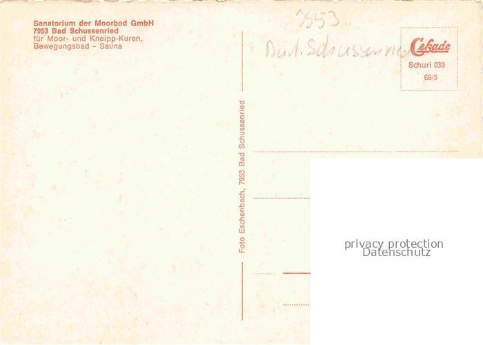 74052828 Bad Schussenried Sanatorium Moorheilbad postalisch nicht gelaufen Erhaltung siehe scans [FriedD77] KatCode: 11110008426014