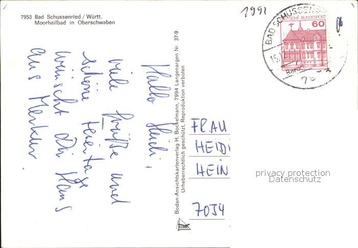 72522702 alte Postkarte Bad Schussenried Schwimmbad Stadttor Wasserspiele Kurpark Klosterhof postalisch gelaufen Erhaltung siehe scans KatCode: 11110008426014