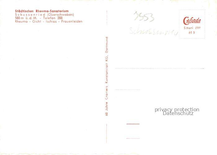 74052833 Bad Schussenried Staedtisches Rheuma-Sanatorium postalisch nicht gelaufen Erhaltung siehe scans [FriedD77] KatCode: 11110008426014