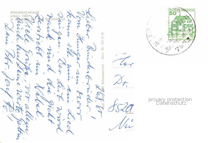 72761877 alte Postkarte Bad Schussenried Strohdachhaus postalisch gelaufen Erhaltung siehe scans [LiesaD40] KatCode: 11110008426014