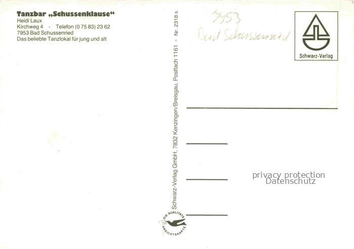74052825 Bad Schussenried Tanzbar Schussenklause postalisch nicht gelaufen Erhaltung siehe scans [FriedD77] KatCode: 11110008426014