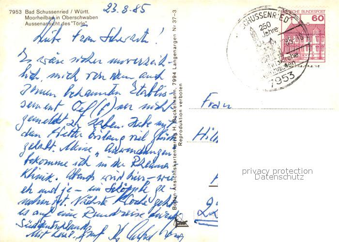 73179329 alte Postkarte Bad Schussenried Toerle Moorheilbad in Oberschwaben postalisch gelaufen Erhaltung siehe scans [FriedD77] KatCode: 11110008426014