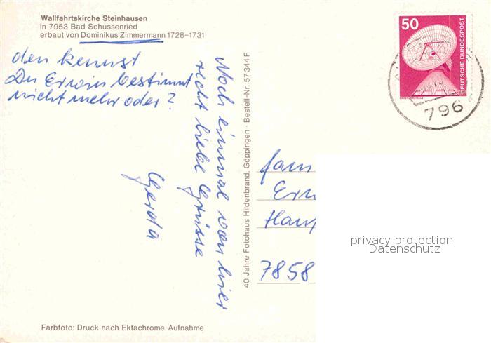 72857371 alte Postkarte Bad Schussenried Wallfahrtskirche Steinhausen postalisch gelaufen Erhaltung siehe scans [WerneD78] KatCode: 11110008426014