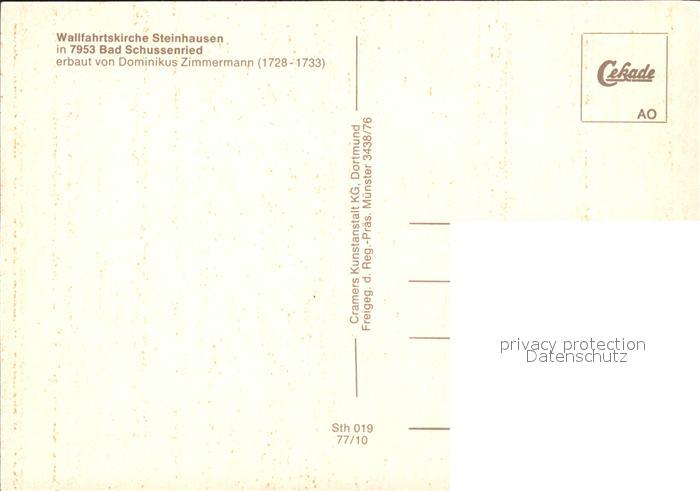 71831875 Bad Schussenried Wallfahrtskirche Steinhausen postalisch nicht gelaufen Erhaltung siehe scans KatCode: 11110008426014