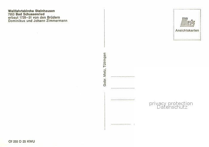 72856459 Bad Schussenried Wallfahrtskirche Steinhausen Wand und Deckengemaelde Orgel postalisch nicht gelaufen Erhaltung siehe scans [WerneD78] KatCode: 11110008426014