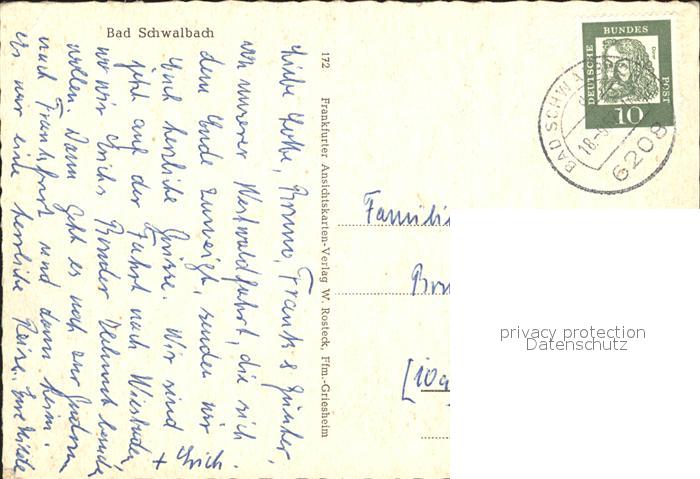 72298124 alte Postkarte Bad Schwalbach postalisch gelaufen Erhaltung siehe scans KatCode: 11110006439002