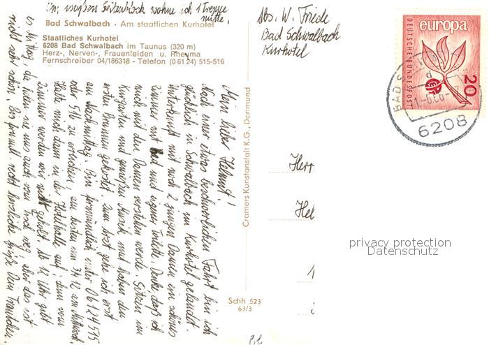 72993765 alte Postkarte Bad Schwalbach Am Staatliche Kurhaus postalisch gelaufen Erhaltung siehe scans [AndreD76] KatCode: 11110006439002