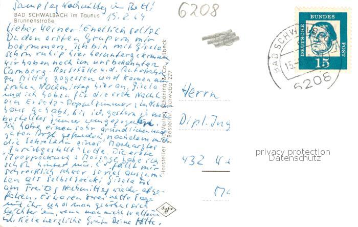 73707440 alte Postkarte Bad Schwalbach Brunnenstrasse Viktoria-Apotheke postalisch gelaufen Erhaltung siehe scans [LiesaD40] KatCode: 11110006439002