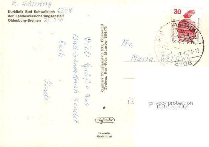 73052468 alte Postkarte Bad Schwalbach Fliegeraufnahme Kurklinik postalisch gelaufen Erhaltung siehe scans [NatalD47] KatCode: 11110006439002