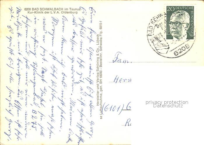 72601750 alte Postkarte Bad Schwalbach Fliegeraufnahme Kurklinik der LVA Oldenburg postalisch gelaufen Erhaltung siehe scans [LiesaD40] KatCode: 11110006439002