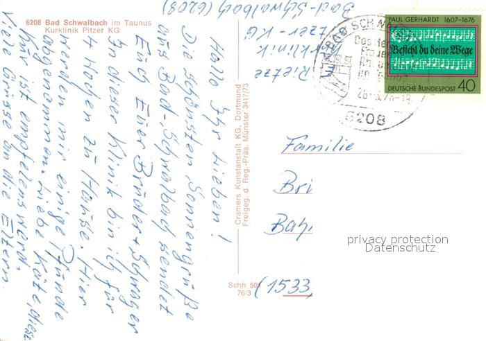 73541921 alte Postkarte Bad Schwalbach Fliegeraufnahme Kurklinik Pitzer KG postalisch gelaufen Erhaltung siehe scans [LiesaD40] KatCode: 11110006439002