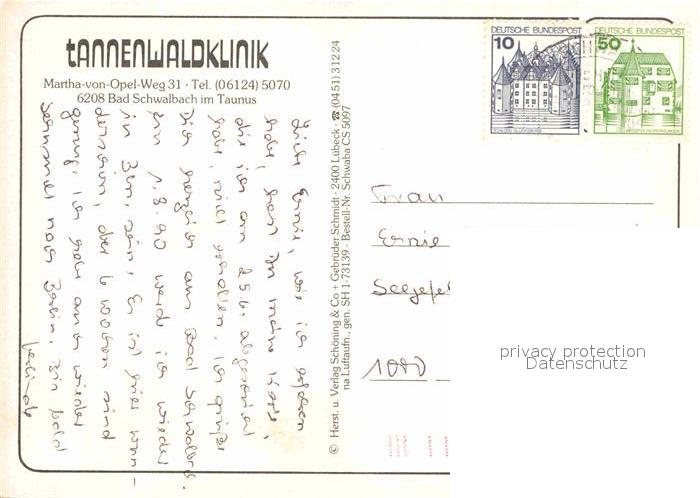 72792181 alte Postkarte Bad Schwalbach Fliegeraufnahme Tannenwaldklinik postalisch gelaufen Erhaltung siehe scans [LiesaD40] KatCode: 11110006439002