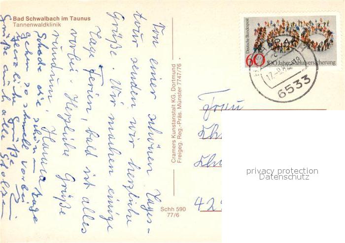 73171807 alte Postkarte Bad Schwalbach Fliegeraufnahme Tannenwaldklinik postalisch gelaufen Erhaltung siehe scans [NatalD47] KatCode: 11110006439002