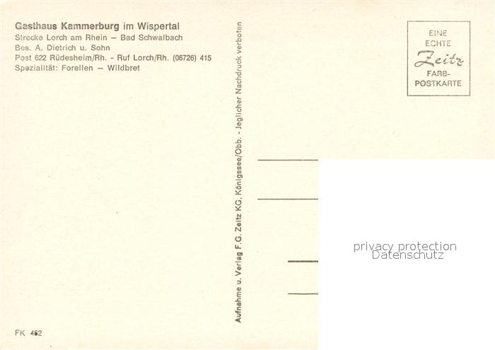 73649282 Bad Schwalbach Gasthaus Kammerburg im Wispertal Garten Terrasse postalisch nicht gelaufen Erhaltung siehe scans [FriedD77] KatCode: 11110006439002