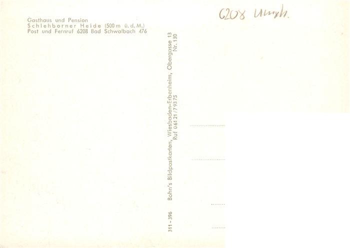 73935757 Bad Schwalbach Gasthaus Pension Schlehborner Heide postalisch nicht gelaufen Erhaltung siehe scans [FriedD77] KatCode: 11110006439002