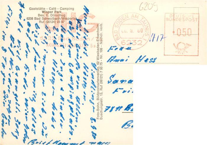 73936615 alte Postkarte Bad Schwalbach Gaststaette Cafe Camping Wisper Park postalisch gelaufen Erhaltung siehe scans [FriedD77] KatCode: 11110006439002