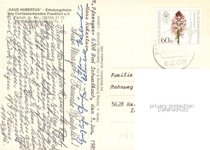 73635081 alte Postkarte Bad Schwalbach Haus Hubertus Terrasse Gaststube postalisch gelaufen Erhaltung siehe scans [WerneD78] KatCode: 11110006439002
