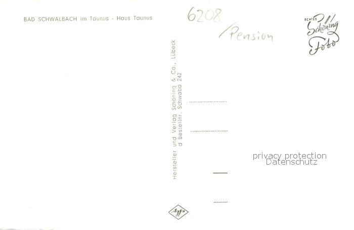 73697331 Bad Schwalbach Haus Taunus Pension postalisch nicht gelaufen Erhaltung siehe scans [LiesaD40] KatCode: 11110006439002