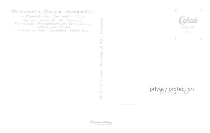73254990 Bad Schwalbach Hotel Pension Riesenmuehle postalisch nicht gelaufen Erhaltung siehe scans [WerneD78] KatCode: 11110006439002
