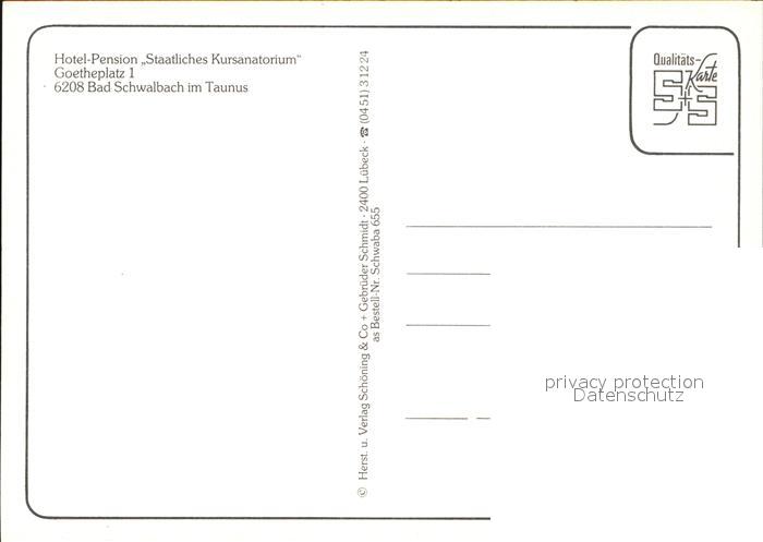 72553701 Bad Schwalbach Hotel Pension Staatliches Kursanatorium postalisch nicht gelaufen Erhaltung siehe scans [LiesaD40] KatCode: 11110006439002